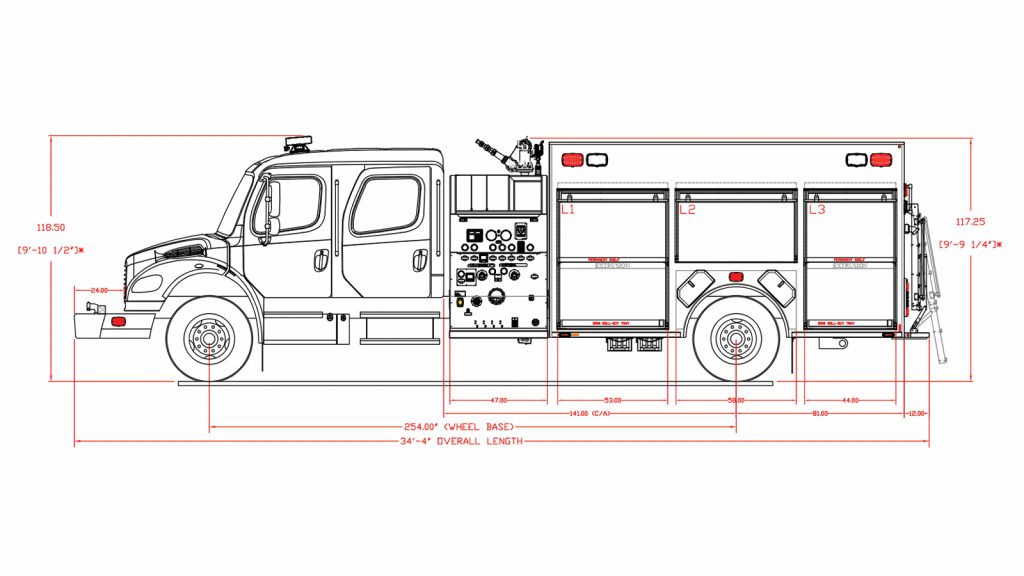 Freightliner M2 PLUS T480 Commercial Chassis, Cummins L9 360 HP Engine, Waterous CSU 1500 GPM Pump, 1000 Gallon Water Tank, 3/16″ Heavy Duty Extruded Aluminum Body