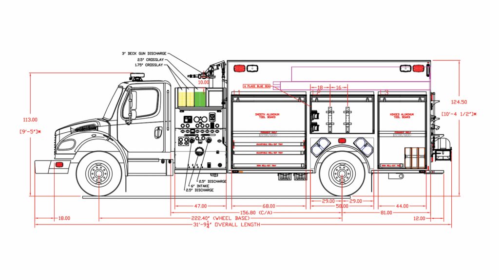 Freightliner M2-112 4-Door Commercial Chassis, Cummins L9 450 HP Engine, Hale RSD PTO 1500 GPM Pump, 750 Gallon Water/50 Gallon Foam Tank, 3/16″ Heavy Duty Extruded Aluminum Body