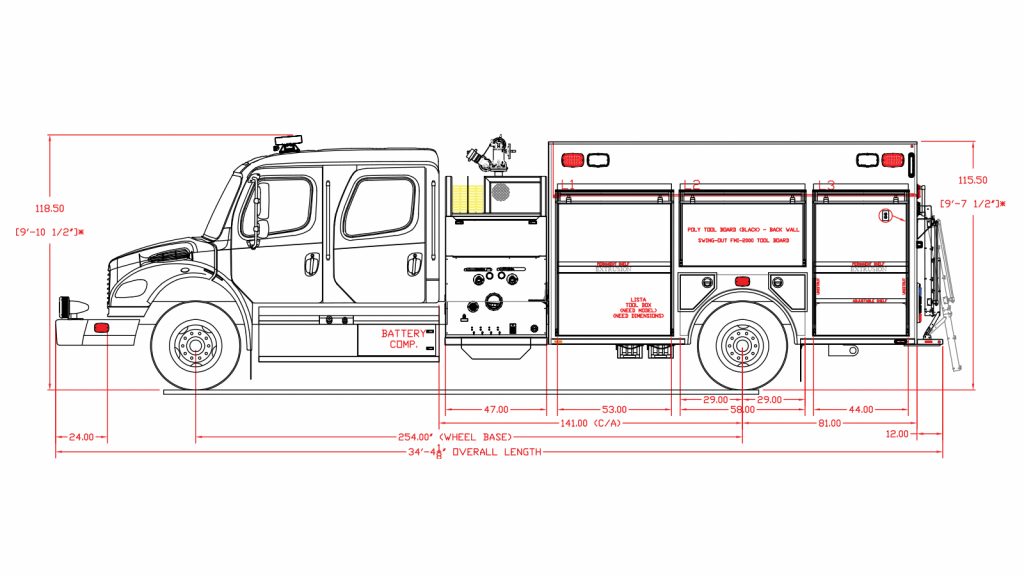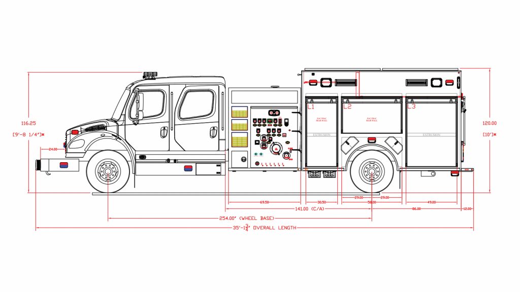 Freightliner M2-112 4-Door Commercial Chassis, Cummins L9 450 HP Engine, Waterous CSU 1250 GPM Pump, 1000 Gallon Water Tank, 3/16″ Heavy Duty Extruded Aluminum Body