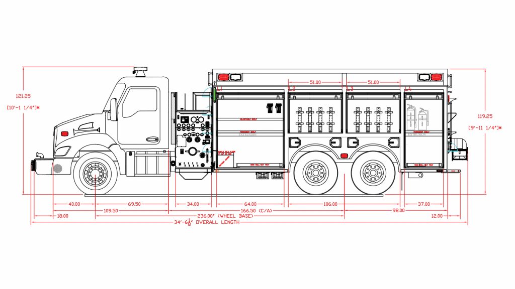 Kenworth T480 Commercial Chassis, PX-9 450 HP Engine, Hale QMax XS 1500 GPM Pump, 3000 Gallon Water Tank, 3/16″ Heavy Duty Extruded Aluminum Body