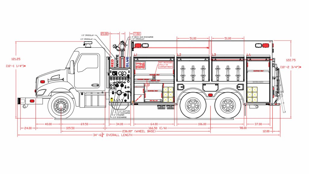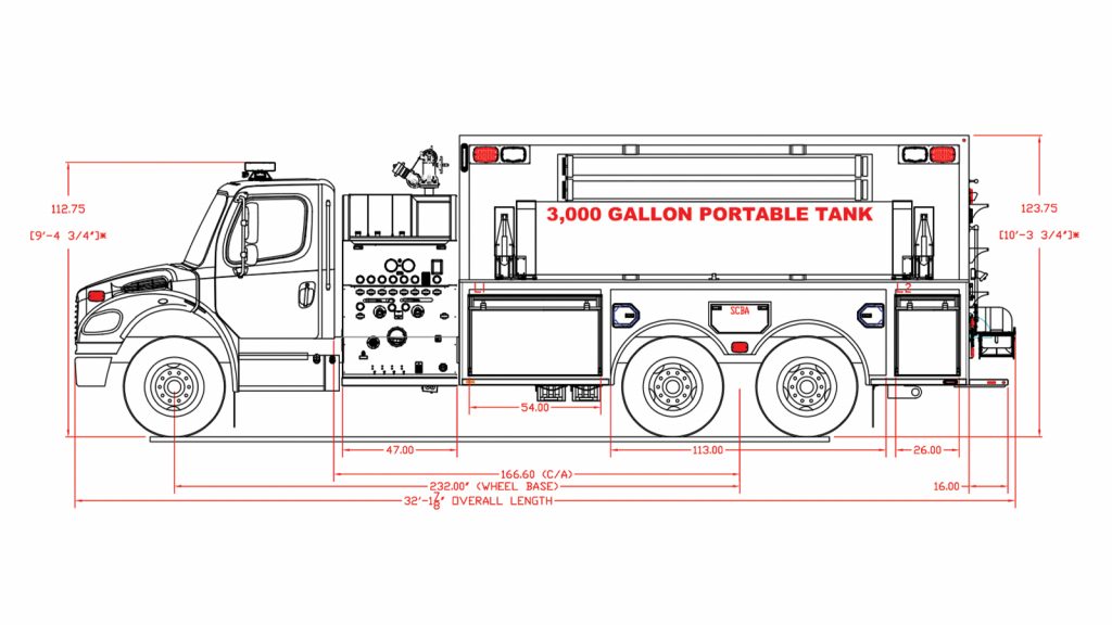 Freightliner 4-Door M2-112 Commercial Chassis, Cummins L9 450 HP Engine, Waterous CSU 1500 GPM Pump, 2500 Gallon Water Tank, 3/16″ Heavy Duty Extruded Aluminum Body