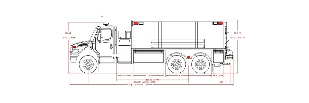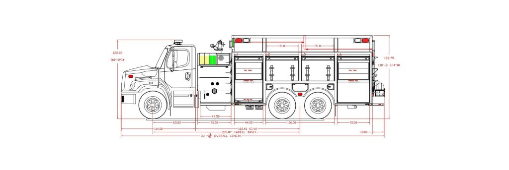 • Freightliner 114SD Commercial Chassis• Cummins X12 500 HP Engine• Allison 4000 EVS Automatic Transmission• 50 Gallon Driver’s Side Aluminum Fuel Tank• Hale QMAX-XS 2,000 GPM Pump• 3,000 Gallon Water Tank• 3/16” Heavy Duty, Extruded Aluminum Body