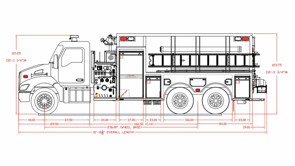 Freightliner M2-106 Commercial Chassis, Cummins L9 360 HP Engine, Hale QMax 1500 GPM Pump, 3000 Gallon Water Tank, 3/16″ Heavy Duty Extruded Aluminum Body