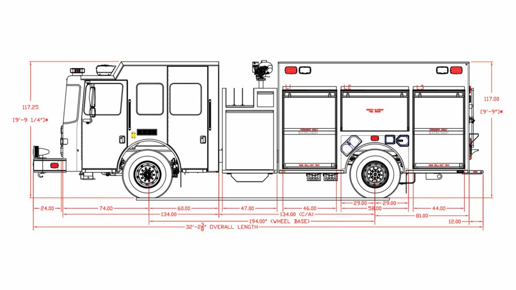 US Fire Apparatus Custom Chassis, Cummins L9 450 HP Engine, Waterous CSU 2000 GPM Pump, 1000 Gallon Water Tank, 3/16″ Heavy Duty Extruded Aluminum Body