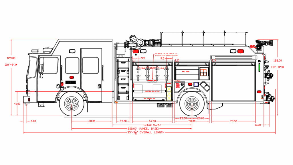 Kenworth T880 Commercial Chassis, Cummins X15 605 HP Engine, Hale RME 3000 GPM Pump, 300 GPM Balanced Pressure Foam System, 1000 Gallon Foam Tank, 3/16″ Heavy Duty Extruded Aluminum Body