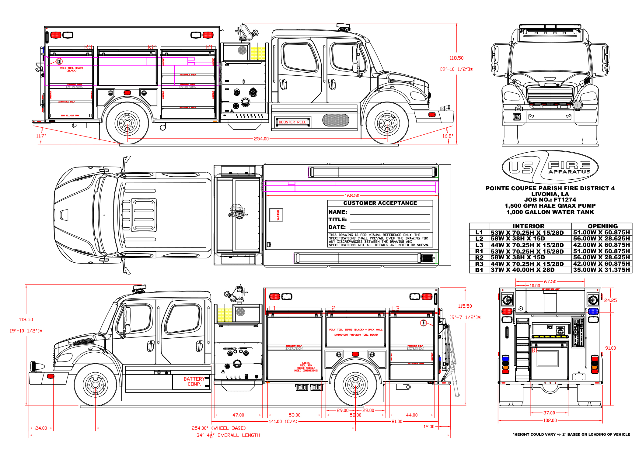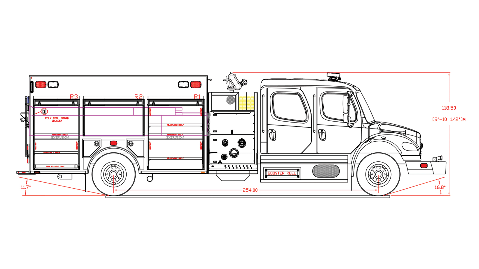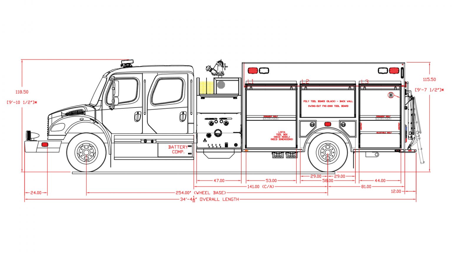 • Freightliner M2-106 4-Door Commercial Chassis• Cummins L9 360 HP Engine• Allison 3000 EVS Automatic Transmission• 50 Gallon Fuel Tank• Hale QMAX 1500 GPM Pump• 1000 Gallon Water Tank• 3/16″ Heavy Duty, Extruded Aluminum Body